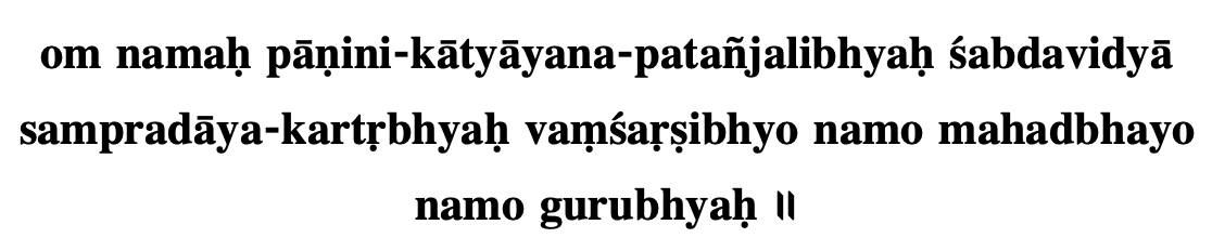 We bow to Panini, Katyayana, Patanjali and various other great Rishis of lineage and Gurus who contributed to this Shadba vidya (knowledge of sound i.e Sanskrit)